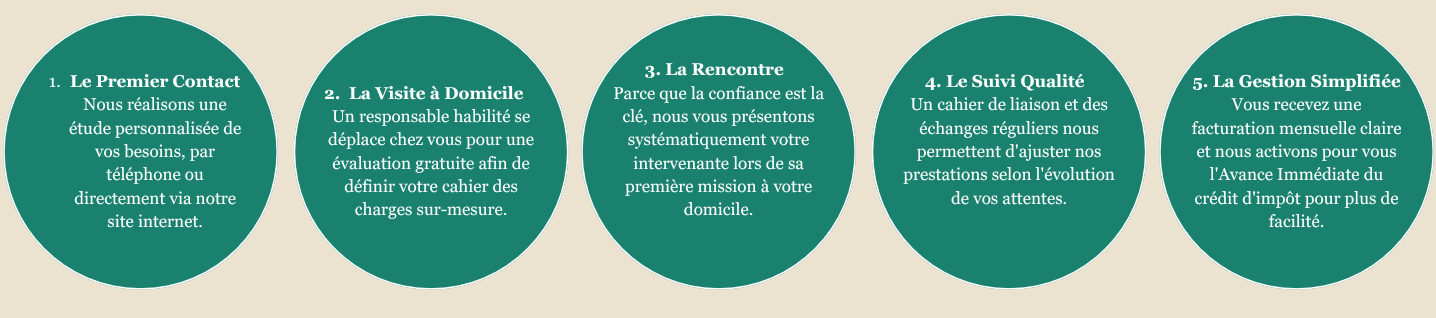 Pas de plateforme anonyme. Avant le premier coup de baguette magique, nous réalisons une visite gratuite à votre domicile pour comprendre vos besoins réels. Un classeur de liaison et un suivi régulier permettent d'ajuster nos soins selon vos envies.
